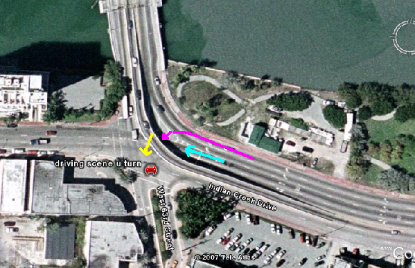 Cuts 19, 20 +21 are all on Indian Creek Drive at 63rd Street as they cut from the right lane and do a quick, tire squealing left turn under the 63rd Street flyover.