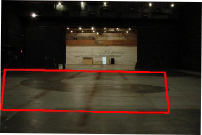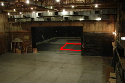 The two pictures below are of the interior of the studio. The area outlined in red is the approximate area where the O.C.B. set was constructed with moveable walls.