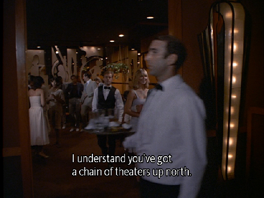The episode ends at the Blue Dolphin Lounge with the exact, perfect music selected to match the scene. The location of the exterior establishing shot is unknown.