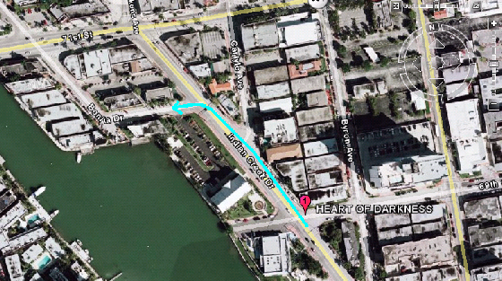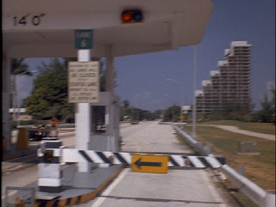 From Artie's they return to the O.C.B. Then they travel thru the toll gate at the west end of the Venetian Causeway. They arrive at Artie's to find he has cleared out. As they pass thru the toll booth you see 1000 Venetian Way in the background. The toll booth was replaced a few years ago.