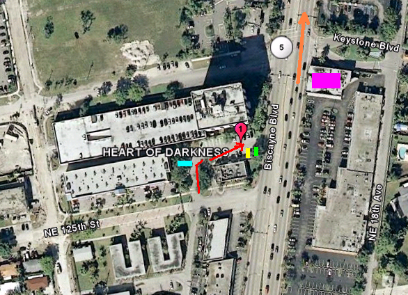 Yellow rectangle is where Crockett and Tubbs were parked.