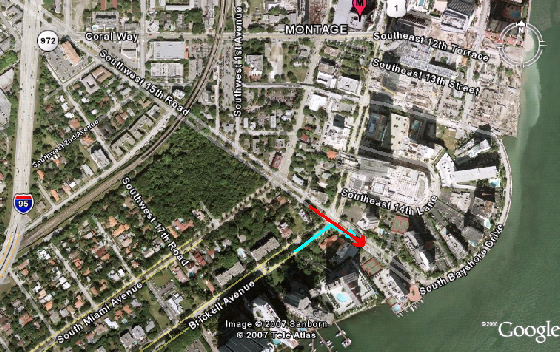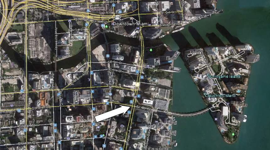 Then they show the Daytona crossing over Brickell Ave. while traveling fast on S.E. 15th Road past the church again.