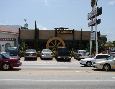 Then we see them pull up to the restaurant. The exterior shot is of La Carreta Restaurant in little Havana. S.W. 8th Street (Calle Ocho) at S.W. 36th Court.