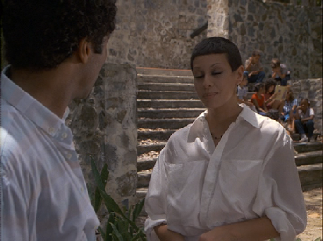Tubbs goes to see Angelina to find out where Calderone is. Unknown island location.