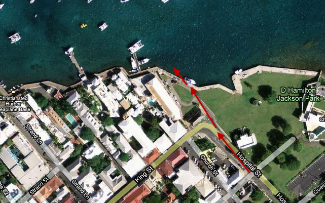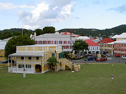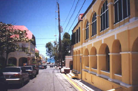 Crockett and Tubbs arrive in St. Andrews. This was filmed in Christiansted, St. Croix, U.S. Virgin Islands.