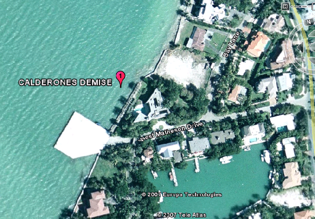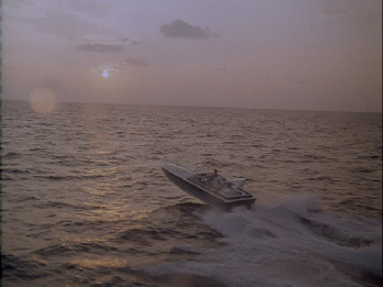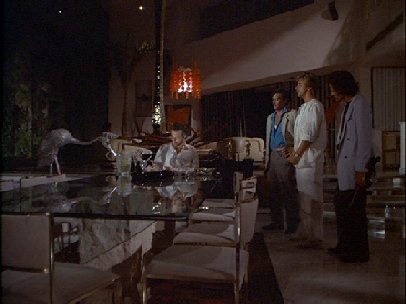 Crockett is taken away from the party at gunpoint. Then Tubbs lets Angelina have it, telling her all about her father. In the next scene we are at Calderone’s house on “St. Andrews”. This was also filmed on Key Biscayne at what is known as the Ortega residence. This was the site of Richard Nixon’s winter white house. That residence was torn down and replaced with this house. Some things such as the floating helipad remain from the Nixon days. This house is used in numerous other Miami Vice episodes. It also gained fame as Frank Lopez’s house in the remake of the movie, Scarface.