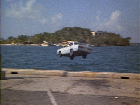 The chase ends with C+T driving north down Hospital Street and running off into the ocean.