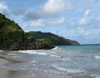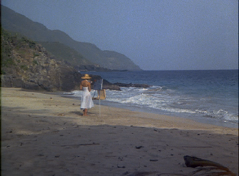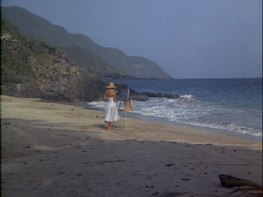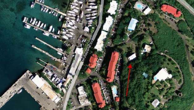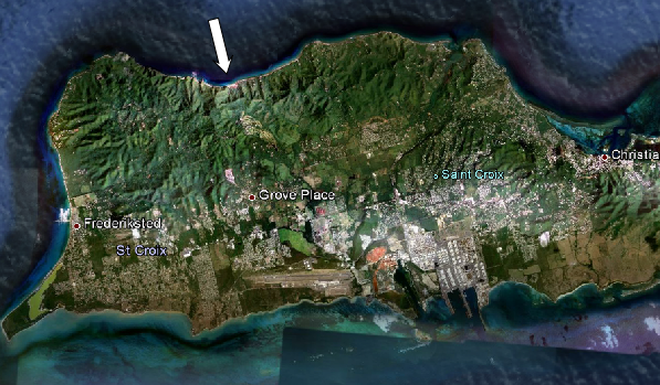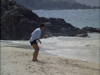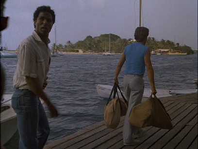 Tubbs meets Calderone’s daughter on the beach. This location eluded me for too long but with a little work I sussed out that this was filmed on the north shore toward the west end of the Island at a place called Carambola Beach.
