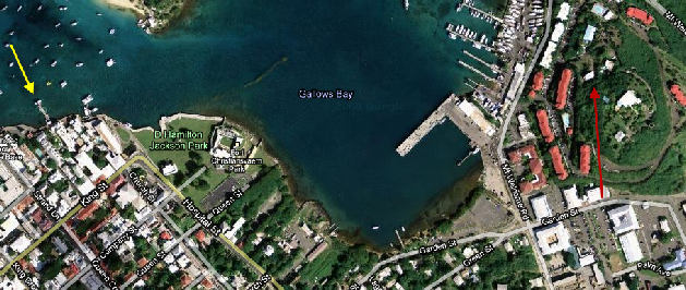 Next we go to where Crockett and Tubbs are staying. This was filmed just east of where they arrived on the island. A small house over looking Gallows Bay.