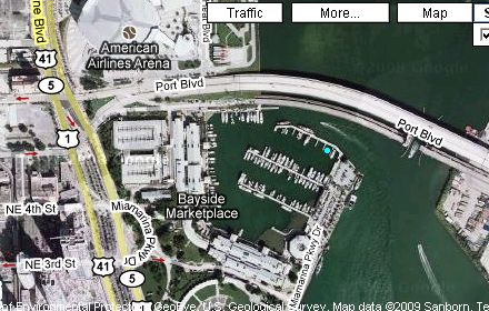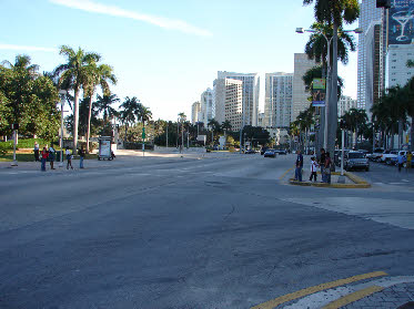 Page 4 left off as the hot pursuit ended with Tubbs turning away from the road into Surprise Waterway. With more Miami movie magic this last cut of the high speed portion of the pursuit is magically moved. With all the previous cuts being on A1A, I long believed this one cut must be in the same area. It is not. It was filmed on U.S. 1 in downtown Miami, outside what is now Bayside Marketplace. Thanks to my location hunting friend DanJ for sussing that out using the hotels in the background.